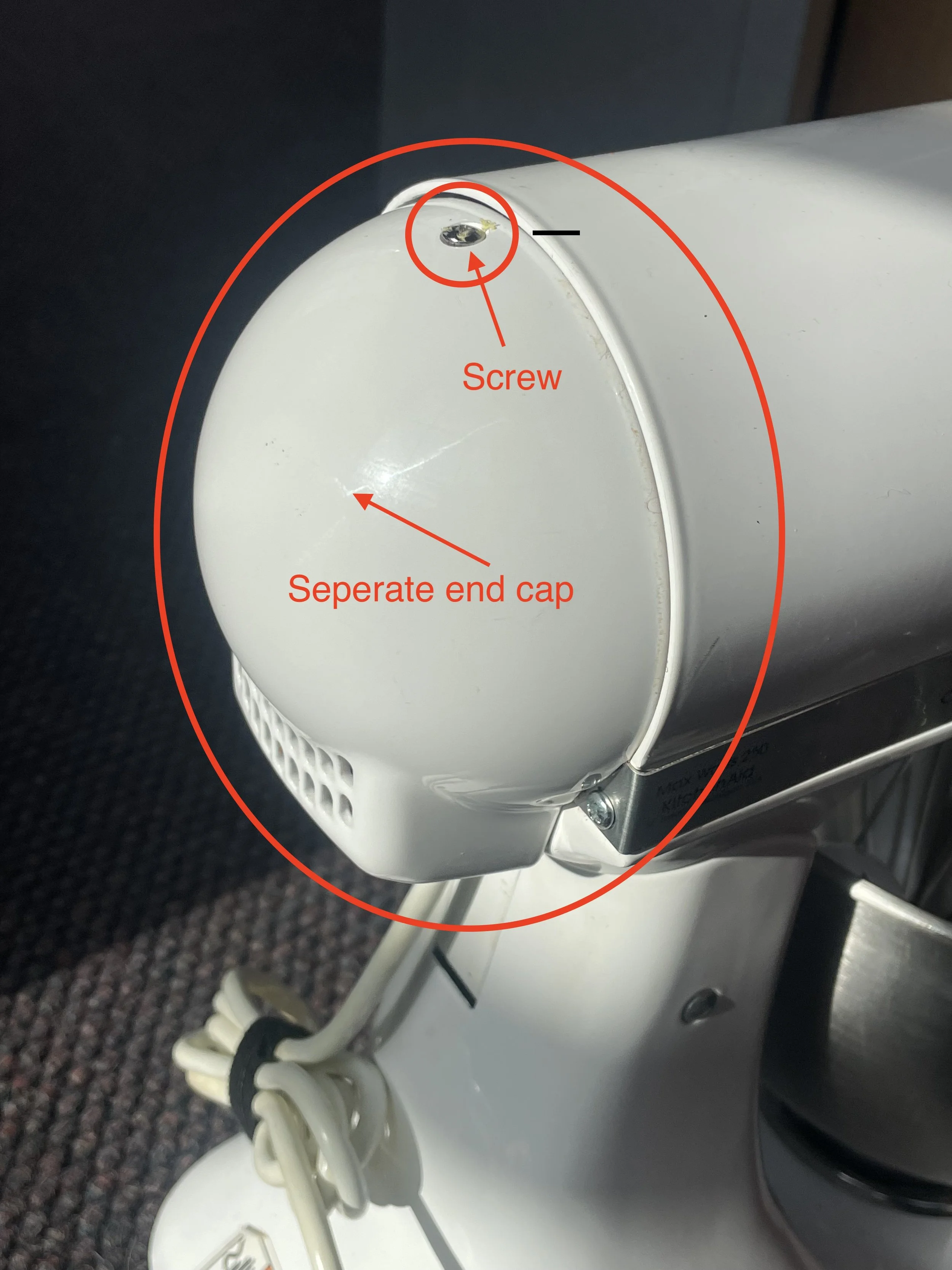 Lift Bowl: 5 qt, 6 qt, 7 qt, Pro 500/600/700 series, Artisan Mini, Tilt Head Accolade. These models don’t have separate end cap and screw is on back, as shown in photo. These models are electronic driven.